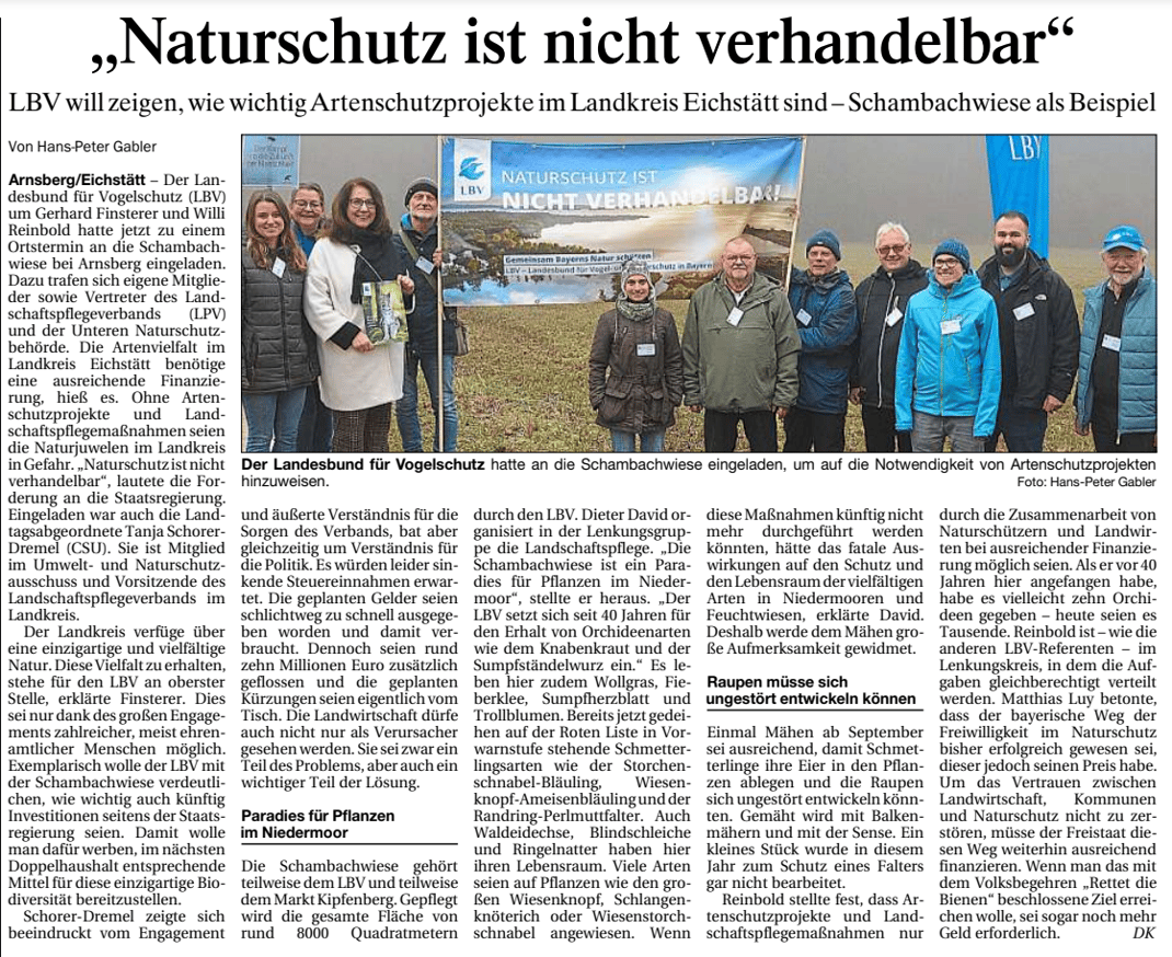 Der Landesbund für Vogelschutz ist ein Verband für Arten- und Biotopschutz. Das Anliegen unserer ehrenamtlicher Kreisgruppe ist ein ganzheitlicher und nachhaltiger Naturschutz. Über 450 Mitglieder im Landkreis Eichstätt ermöglichen wichtige Erfolge für den Arten- und Naturschutz.
